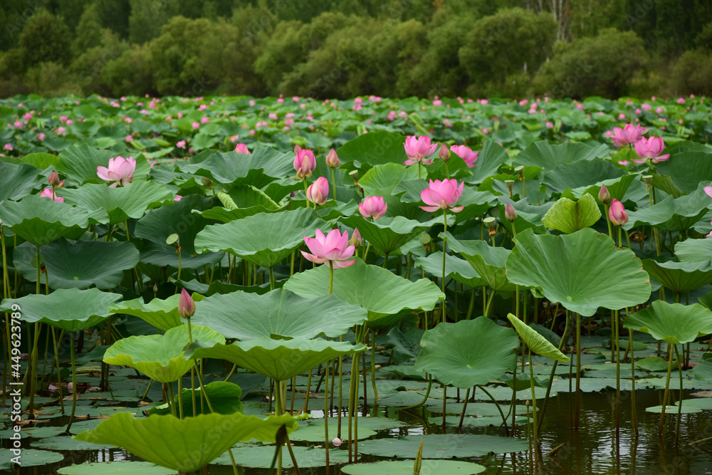 Nut Bearing Lotus Latin Nelumbo Nucifera Is A Species Of Perennial Herbaceous Amphibian Plants In The Lotus Family Nelumbonaceae A Lake With Flowers Stock Photo Adobe Stock